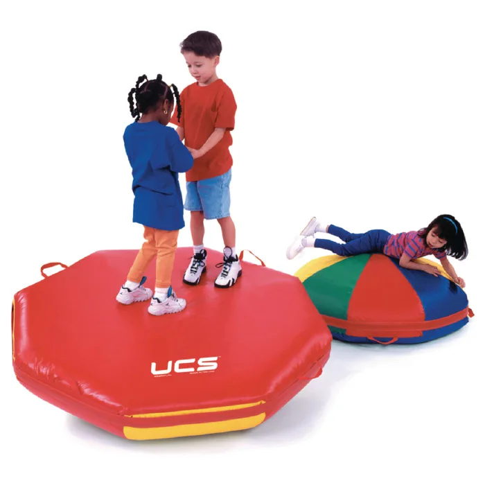 The Vestibular Dome provides young children with a fun balancing toy that helps develop gross motor skills while still having fun! The durable dome has straps on the sides for easy transfer and is made of vinyl coated fabric with polyurethane filler. Measures 13”H with 43” diameter.